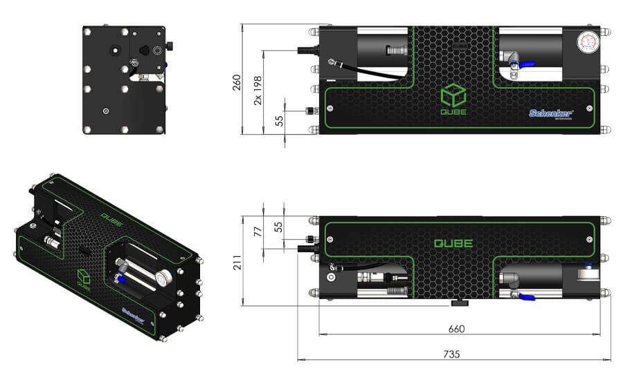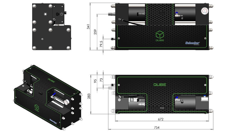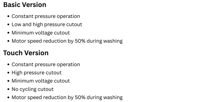 The QUBE uses extremely quiet and reliable brushless electric motors. A sophisticated feedback control automatically adjusts the engine speed based on external parameters, maintaining constant the operating pressure and optimizing the final rinse operations.